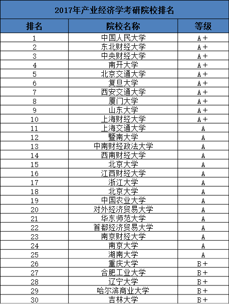 产业经济学是应用经济学领域的重要分支,现代西方经济学中分析现实经济问题的新兴应用经济理论体系。从上述表格数据可以看出,中国人民大学的产业经济学专业实力远超其他大学,同时中国人民大学在17年公布的双一流大学名单中位列第二名,可见其实力强大。第二名、第三名属于东北财经大学和中央财经大学是老牌财经类强校,经济类专业全国领先。前十名中的南开大学、复旦大学、西安交通大学、厦门大学、山东大学通通入选双一流大学名单。