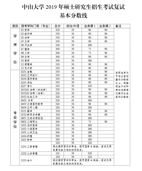 据中山大学研究生院消息,2019年中山大学半岛在线注册复试分数线已出,详情如下:
