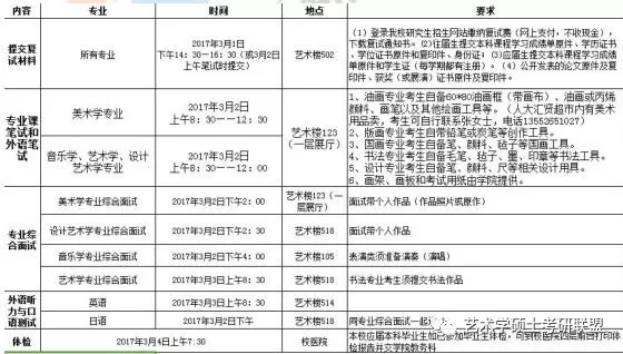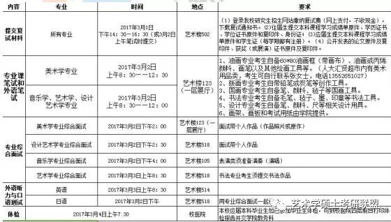 第二:实在写不出来的:阐述定义+特征+例证+发展+点评+意义第三:注意卷面分布,字迹工整,卷面整洁8.2 2 专业写生8.1 2.1 出题规律专业写生每年题目几乎没有太大变动。9 9 本专业复试情况介绍9.1 1 复试时间三月一号----三号9.2 2 复试科目一般考英语笔试,专业笔试,专业创作,导师组综合面试,英语口语。9.3 3 复试参考书无,官网没有公布。考察学生的各种综合能力。9.4 4 复试形式复试分为三天,每年情况会有轻微的调整,总体不改变。第一天,一般考英语笔试,专业笔试,专业创作,导师组综合面试。第二天,一般情况下是英语口语。第三天,复试体检。具体情况如下图表:(以 2017 年为主,因为今年是专硕限期整改的第一年)
