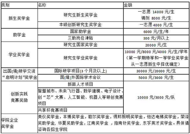 研招办负责人:学校建有完善的研究生奖助体系,包括:国家奖学金、学业奖学金、专项奖学金和国家助学金,其中,全日制一志愿新生奖学金14000元/生,参与本硕创新计划的本校一志愿新生奖学金4000元/生,非全日制研究生一志愿新生奖学金8000元/生,欢迎优秀考生来我校攻读硕士研究生!