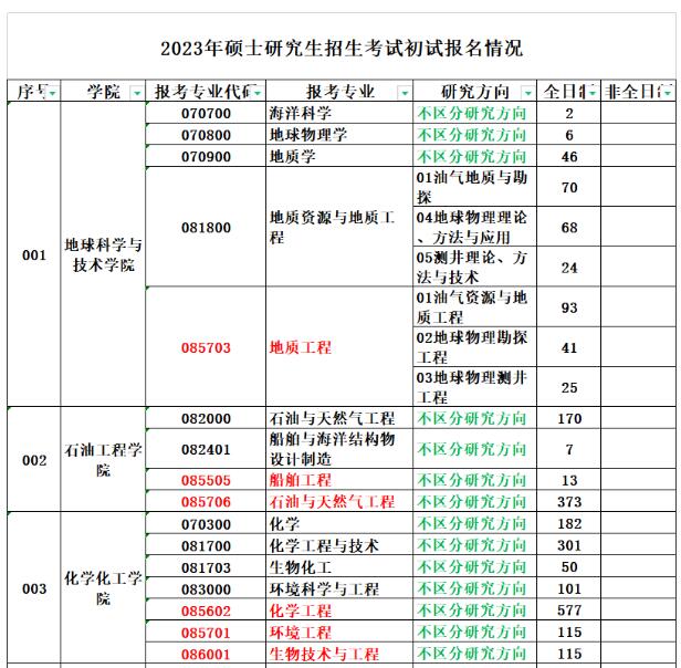 中国石油大学(华东)2023年半岛在线注册招生考试初试报名情况