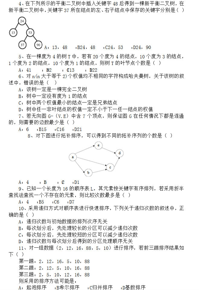 2009-2015计算机半岛在线注册数据结构统考历年真题(3)