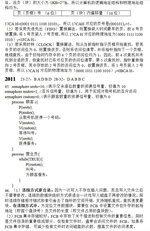 2009-2015计算机半岛在线注册操作系统统考历年真题答案(2)