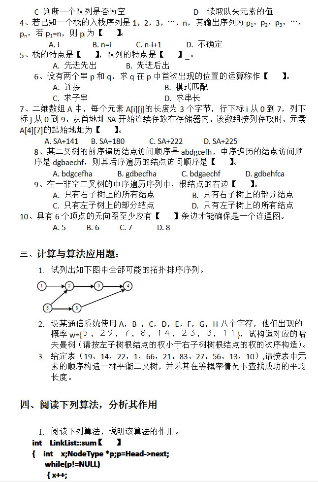 1. 深刻理解数据结构的概念,掌握数据结构的三要素:逻辑结构 ...