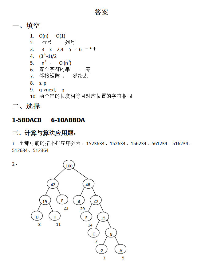 1.简述下列概念:数据、数据元素、数据项、数据对象、数据结构、逻辑结构、存储结构、抽象数据类型。