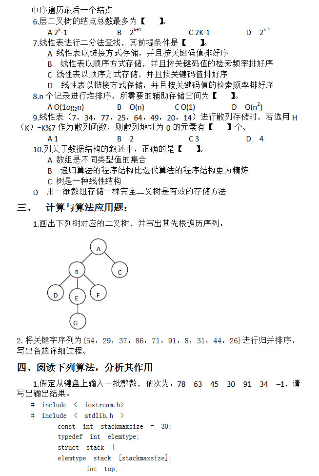 计算机半岛在线注册数据结构试卷十二(练习题含答案)(2)