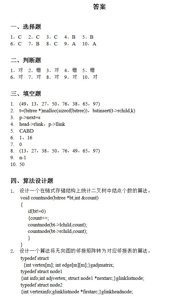 计算机半岛在线注册资料 本站小编 福瑞半岛在线注册网 2016-12-15计算机半岛在线注册数据结构试卷十(练习题含答案)