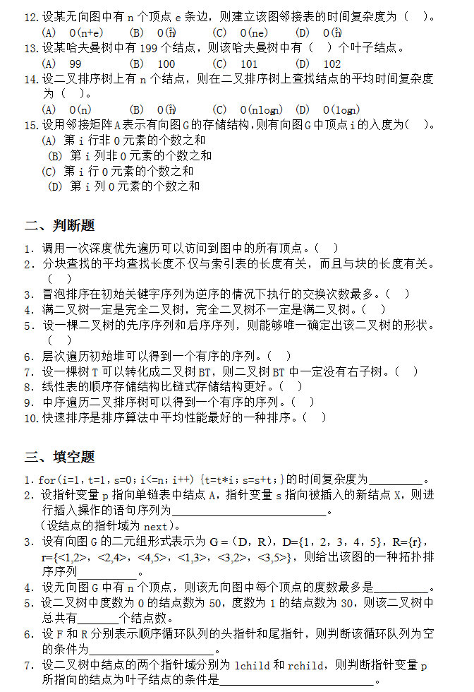 计算机半岛在线注册资料 本站小编 福瑞半岛在线注册网 2016-12-15计算机半岛在线注册数据结构试卷十二(练习题含答案)