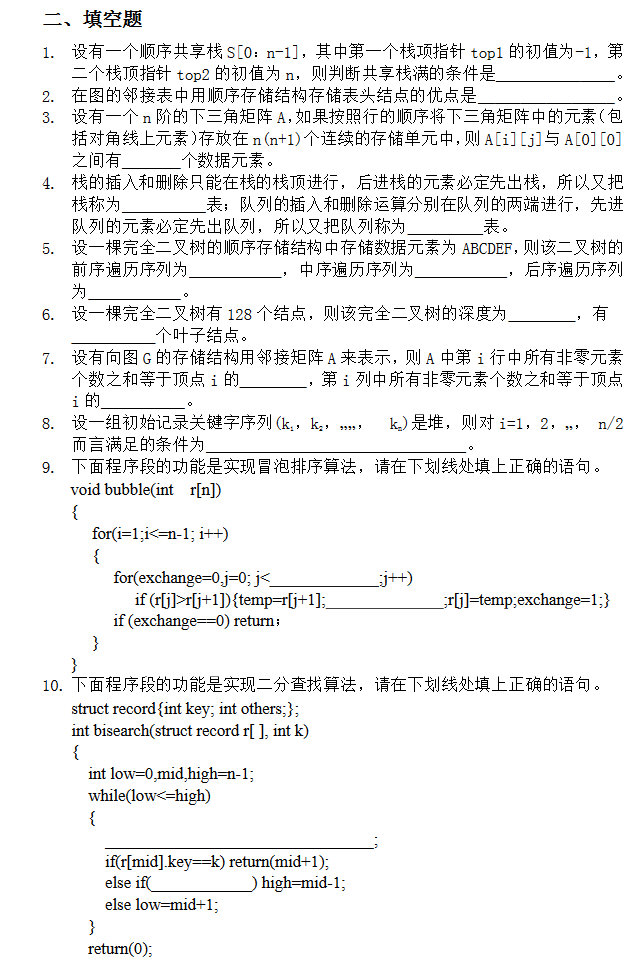 计算机半岛在线注册资料 本站小编 福瑞半岛在线注册网 2016-12-15计算机半岛在线注册数据结构试卷十(练习题含答案)