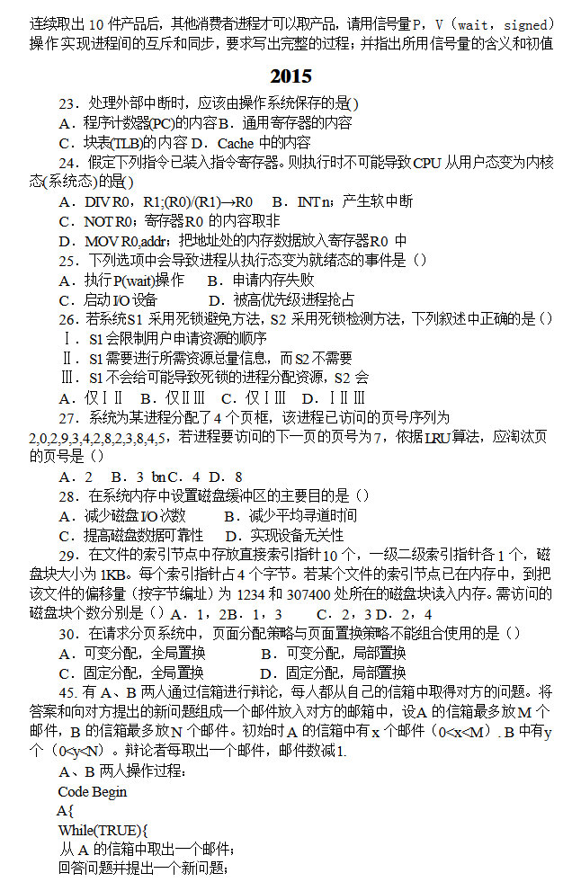 2015年全国硕士研究生入学统一考试计算机科学与技术学科联考计算机学科专业基础综合真题及详解