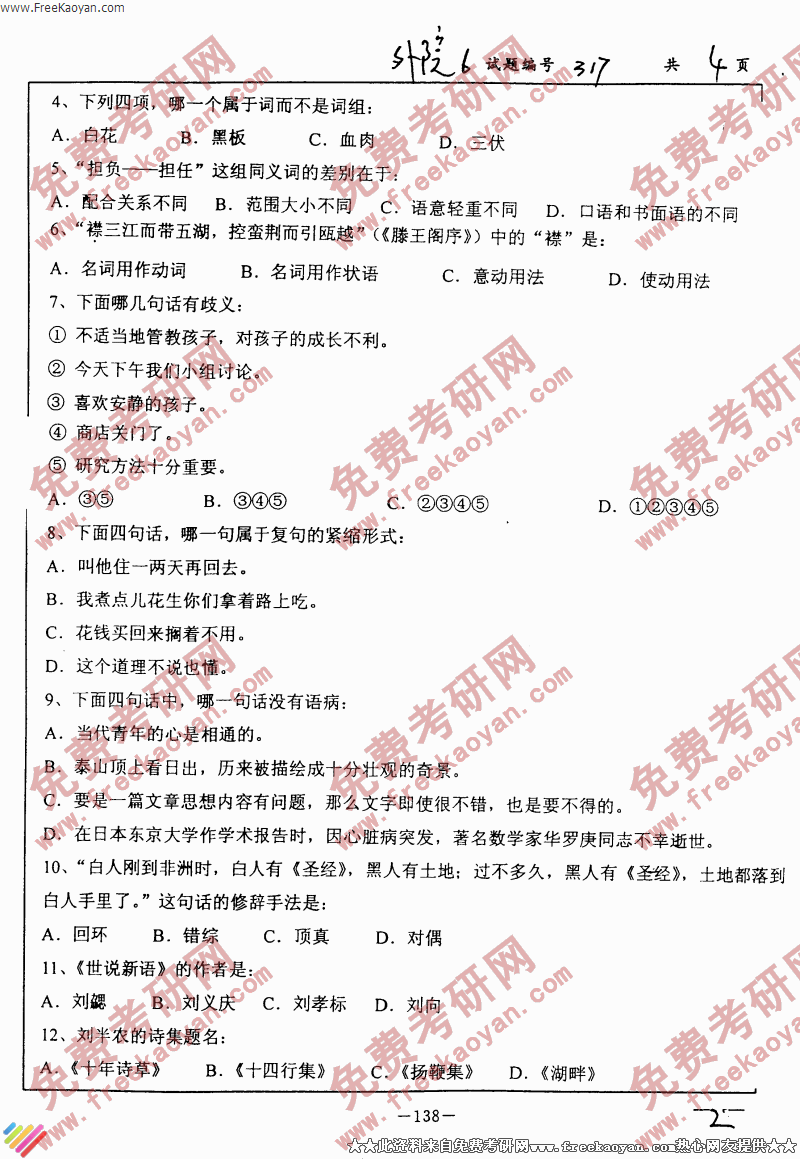 南京大学2005年半岛在线注册真题-基础语文(2)