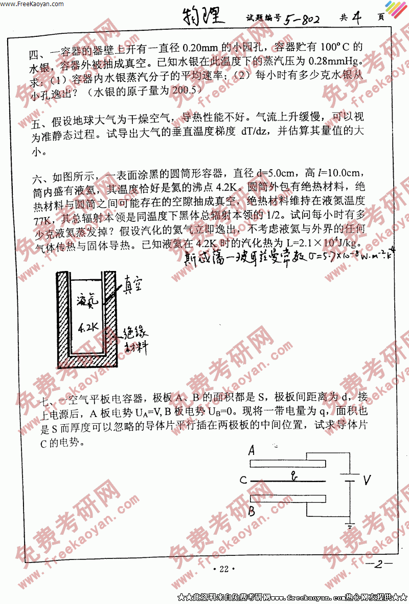 南京大学2005年半岛在线注册真题-普通物理(2)