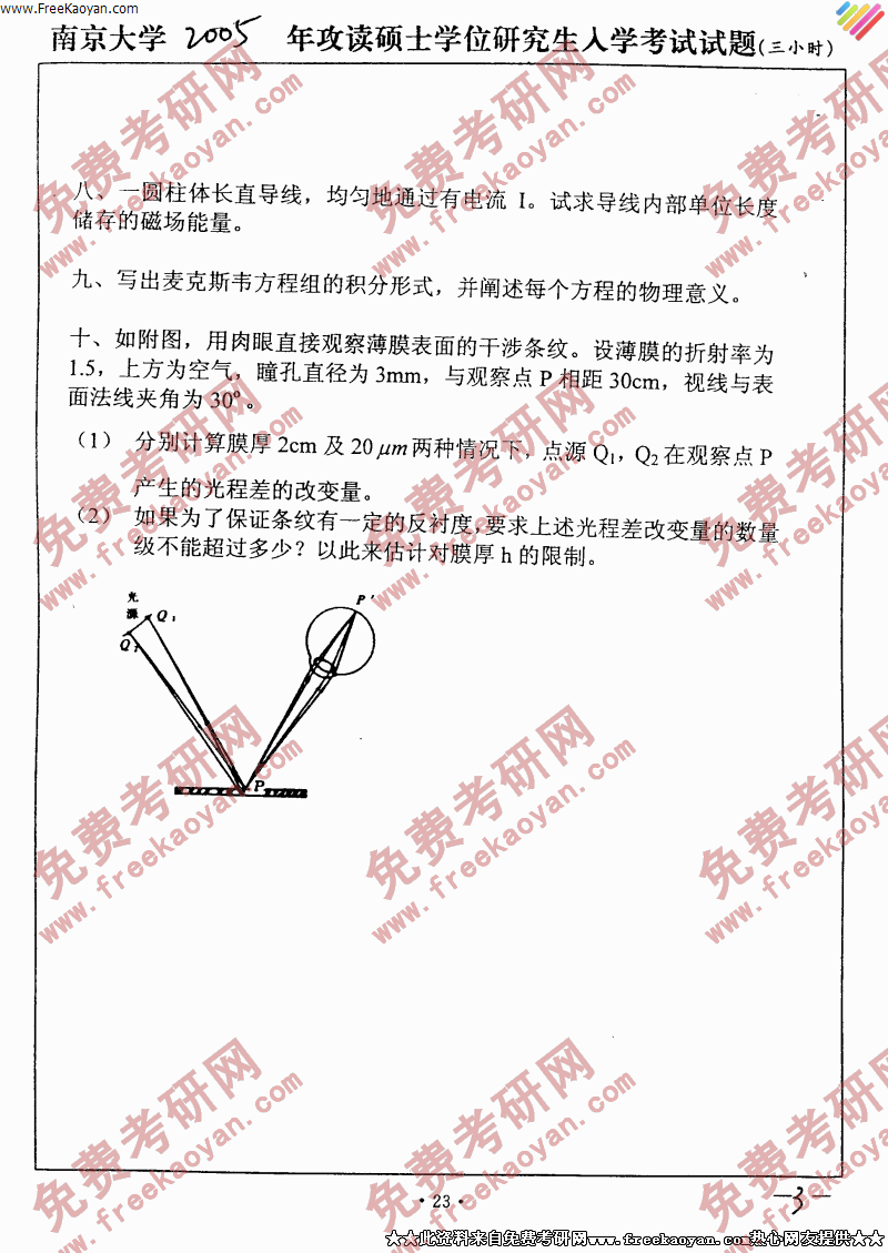 南京大学2005年半岛在线注册真题-普通物理(3)