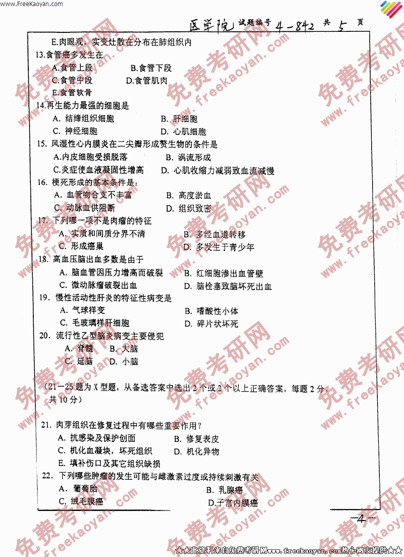 南京大学2006年半岛在线注册真题-病理学(神经病与精神卫生学,影象医学与核医学,肿瘤学,口腔临床医学)(4)