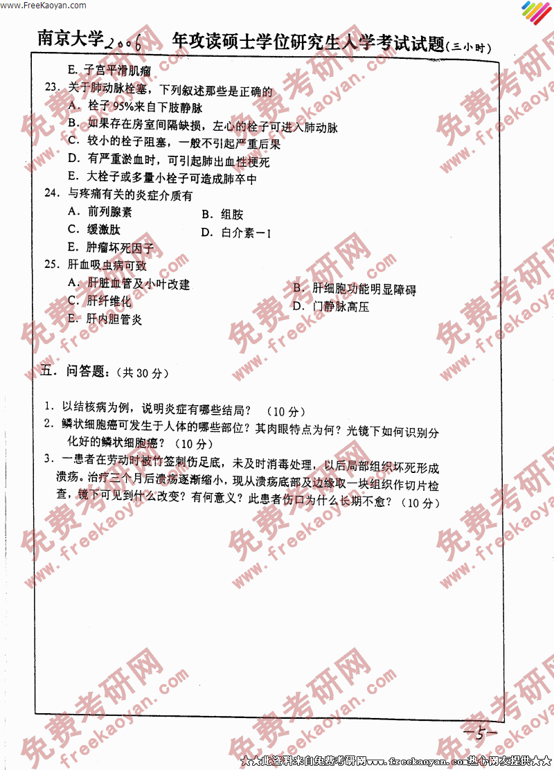 南京大学2006年半岛在线注册真题-病理学(神经病与精神卫生学,影象医学与核医学,肿瘤学,口腔临床医学)(5)