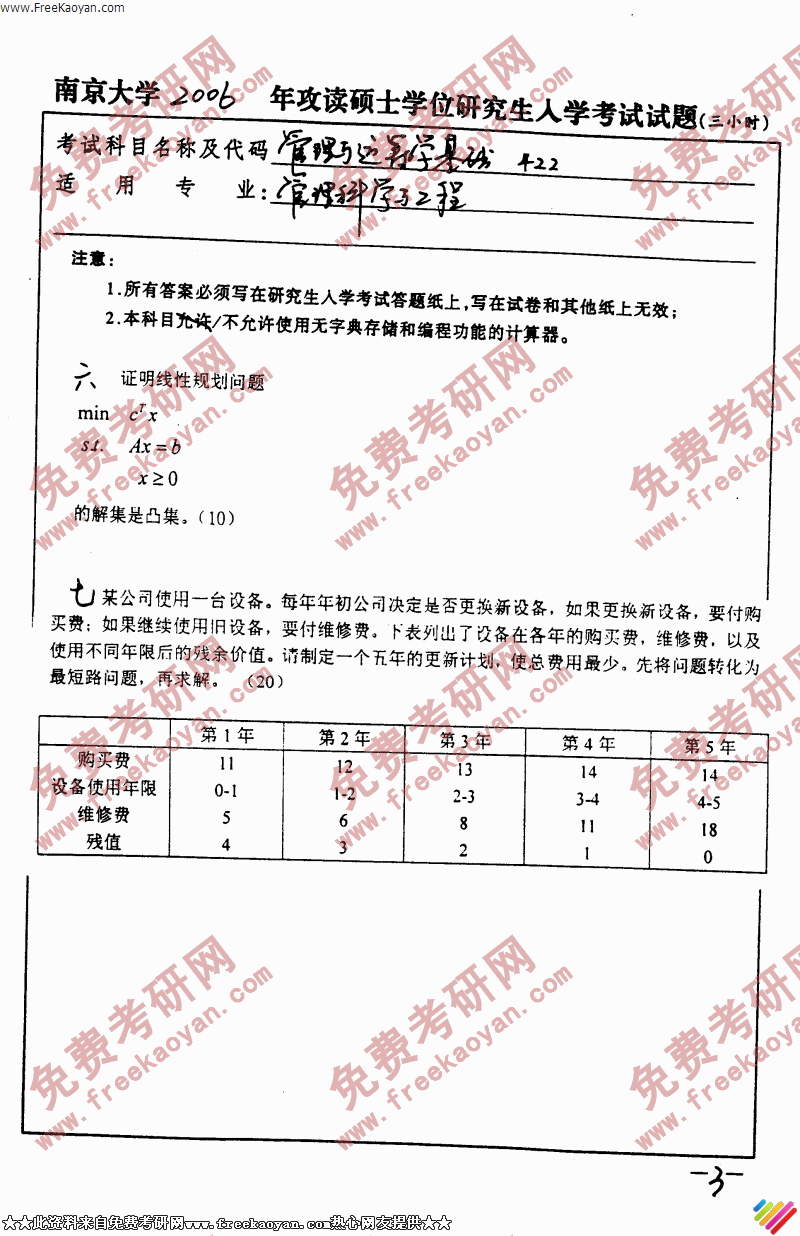 南京大学2006年半岛在线注册真题-管理与运筹学基础(3)