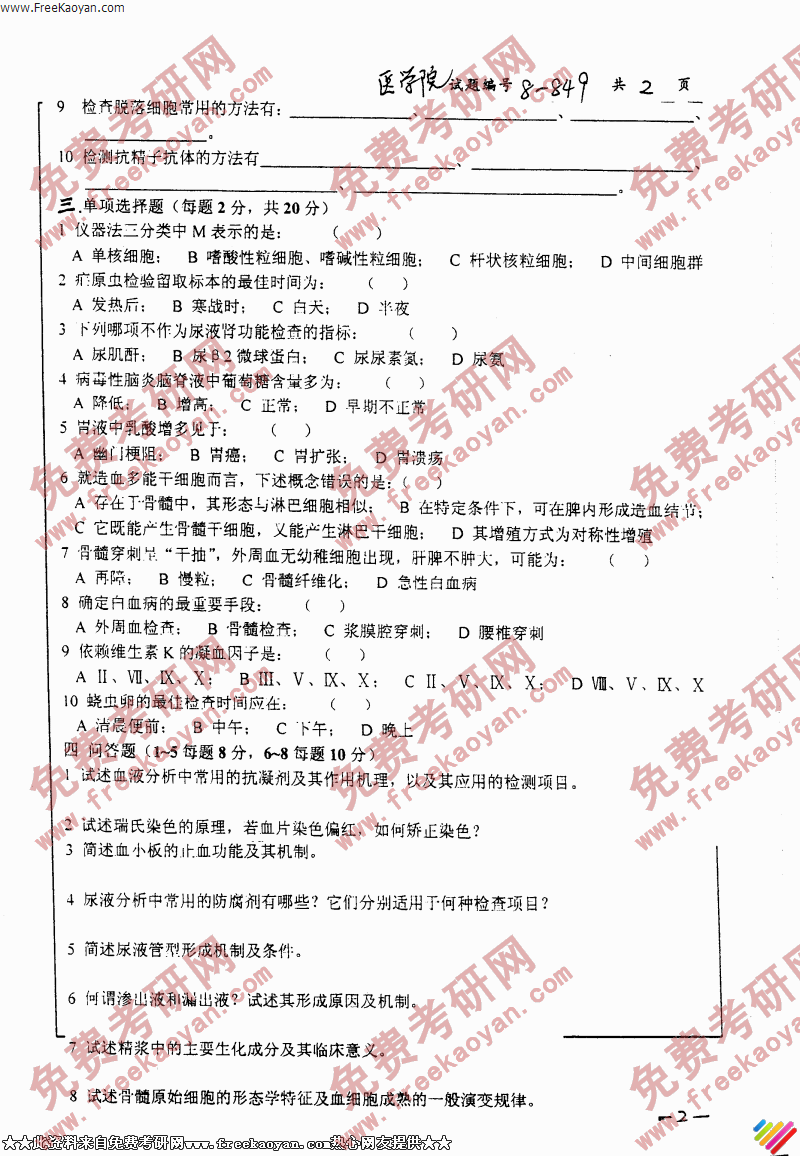南京大学2006年半岛在线注册真题-临床检验基础(临床检验诊断学)(2)