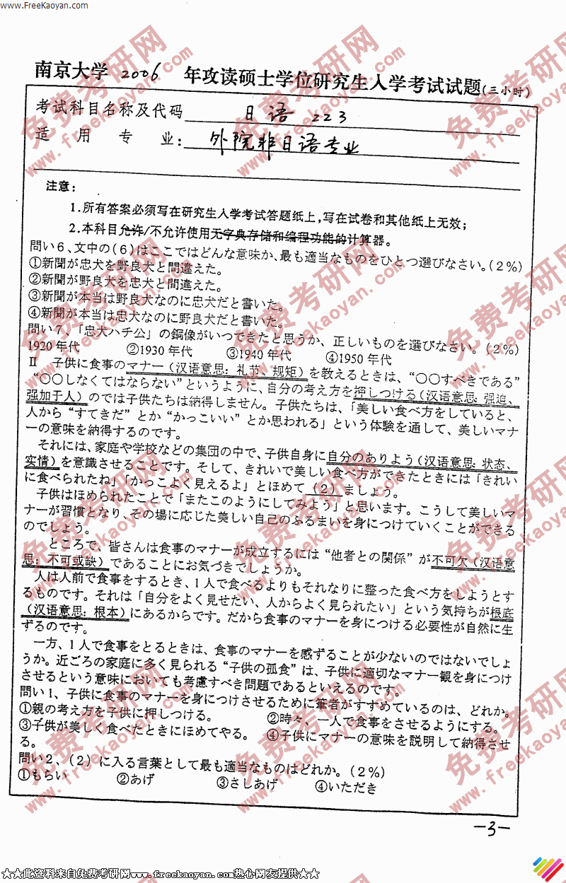专业课半岛在线注册经验 本站小编 FreeKaoyan 2018-01-22南京大学2006年半岛在线注册真题-基础日语