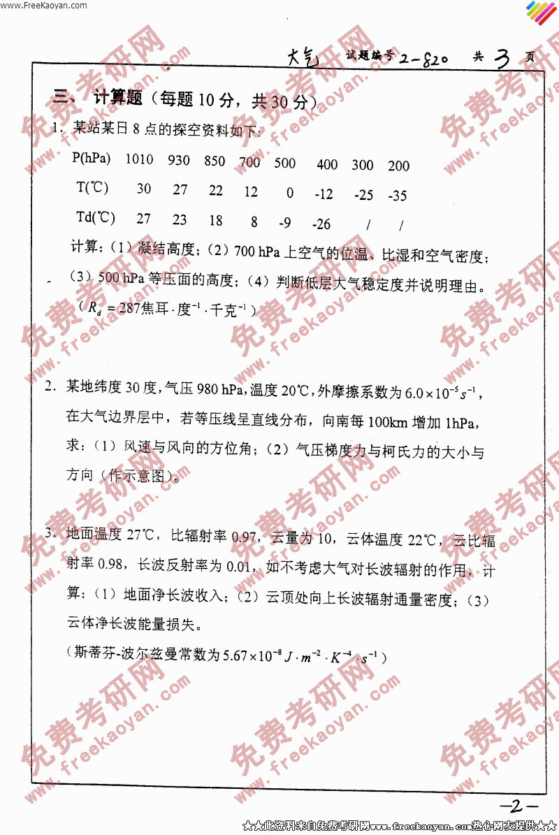 南京大学2006年半岛在线注册真题-专业综合(气象学、大气物理学与大气环境)(2)
