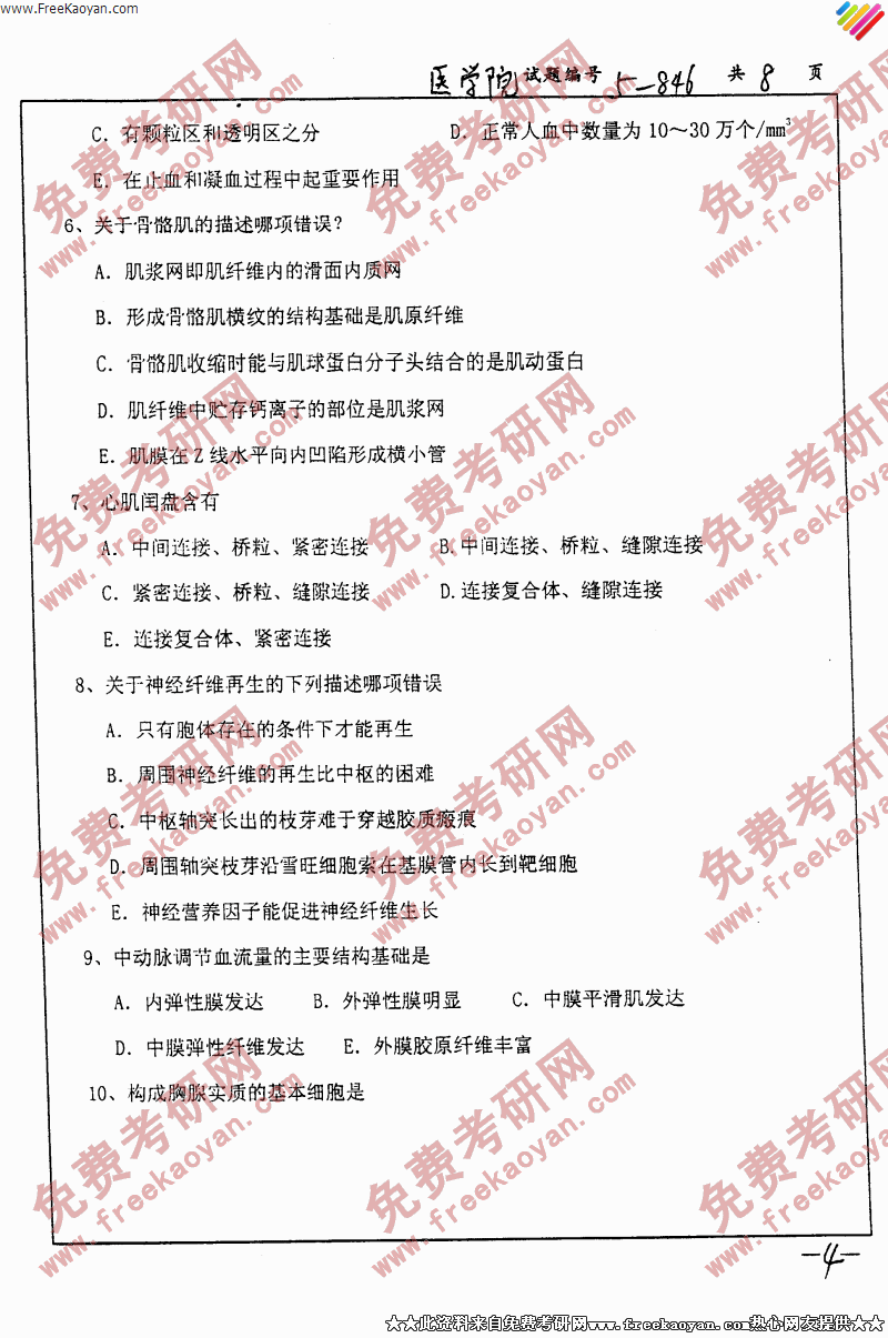南京大学2006年半岛在线注册真题-组织胚胎学(病理学与生理学)(4)