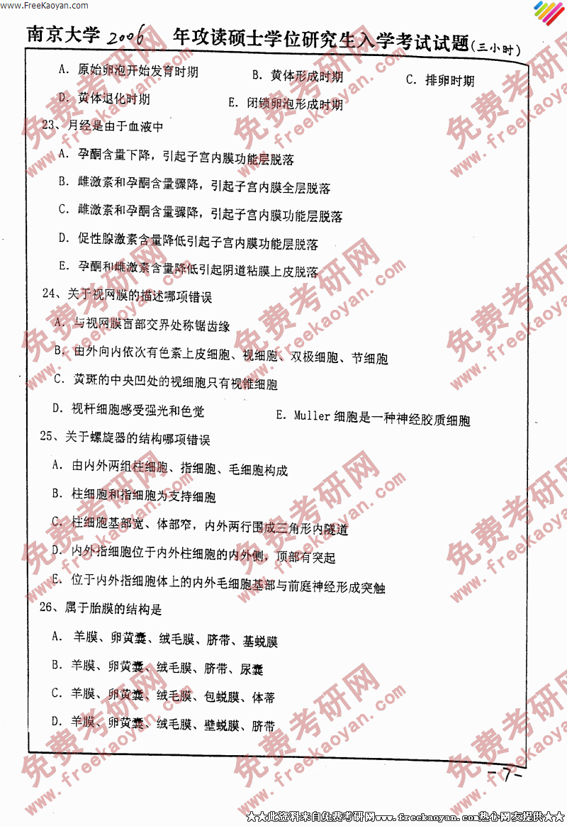 南京大学2006年半岛在线注册真题-组织胚胎学(病理学与生理学)(7)