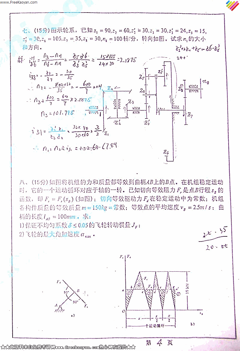 东南大学1999年半岛在线注册真题-机械原理(4)