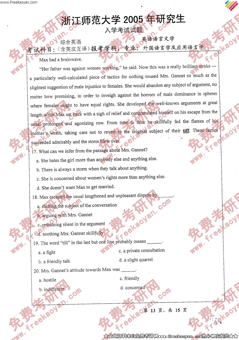 浙江师范大学2005年半岛在线注册真题-综合英语(13)