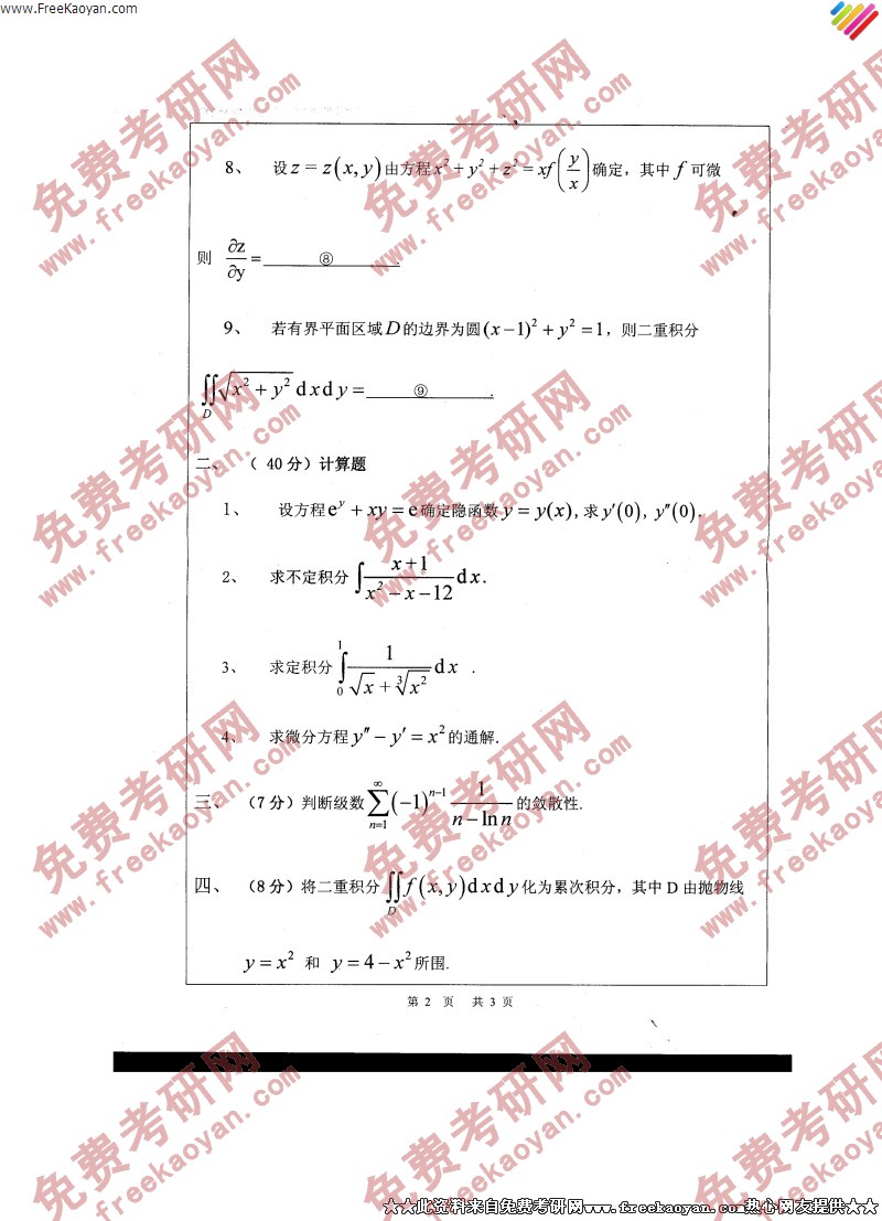 浙江师范大学2006年半岛在线注册真题-高等数学(2)