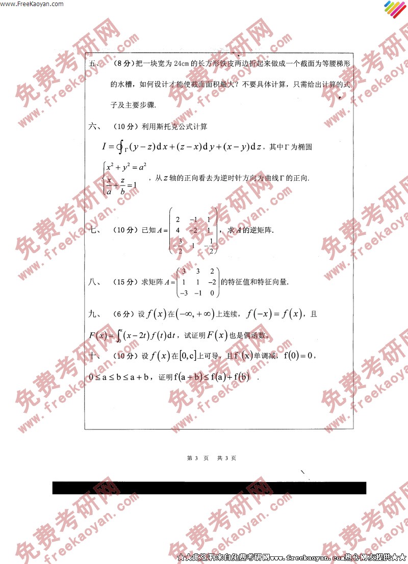 浙江师范大学2006年半岛在线注册真题-高等数学(3)