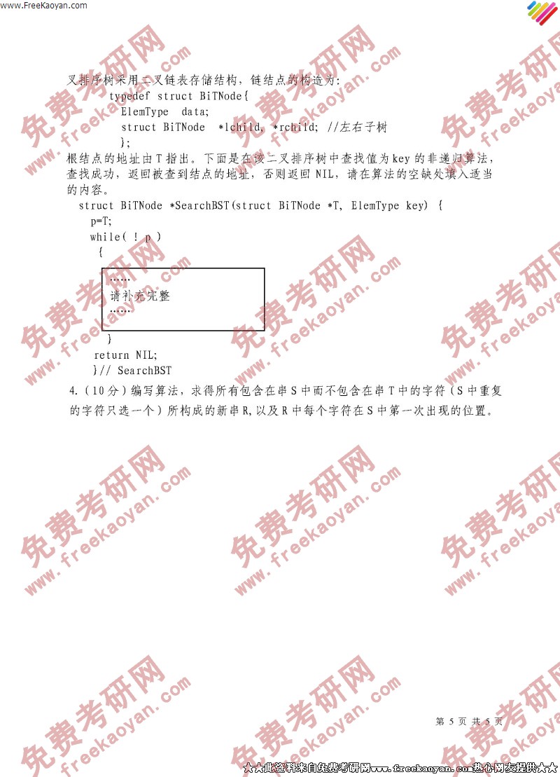 浙江师范大学2006年半岛在线注册真题-数据结构(5)