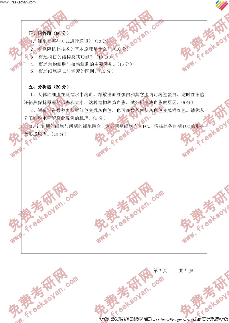 浙江师范大学2006年半岛在线注册真题-细胞生物学(3)