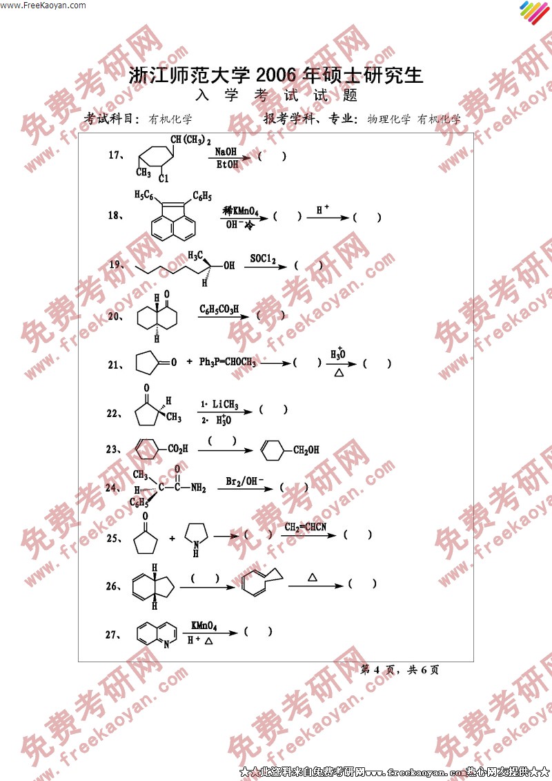 浙江师范大学2006年半岛在线注册真题-有机化学(4)