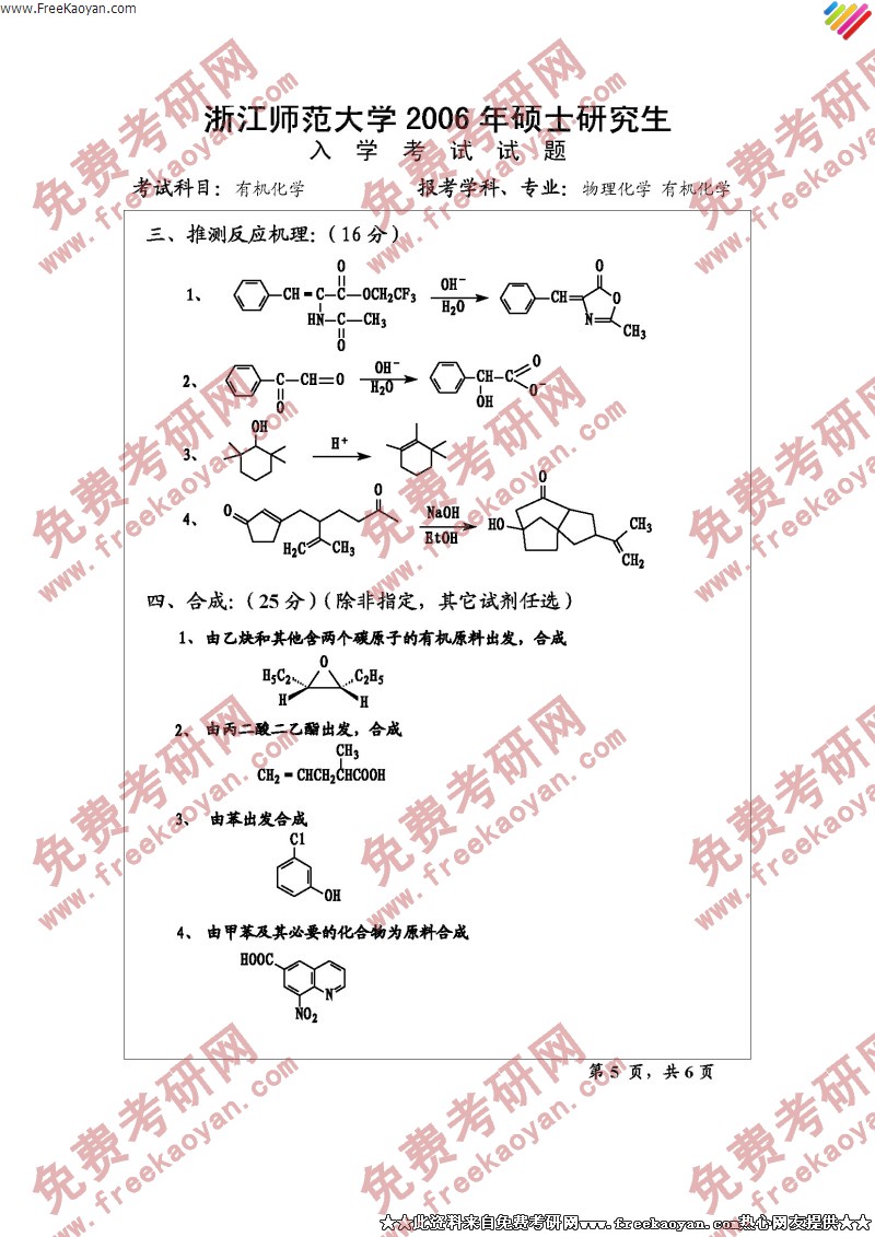 浙江师范大学2006年半岛在线注册真题-有机化学(5)