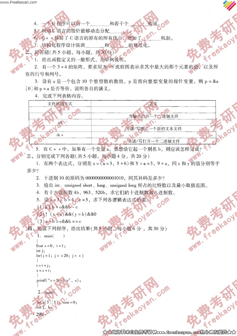 武汉大学2005年半岛在线注册真题-C程序设计(2)