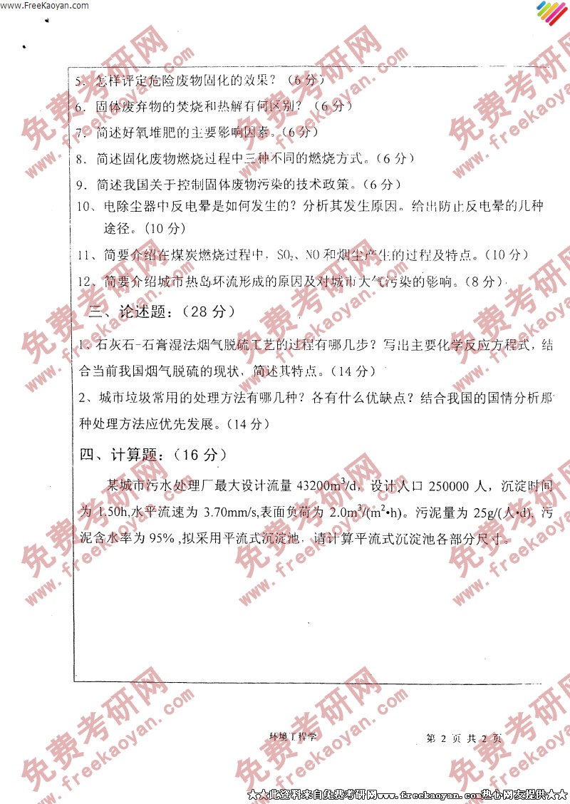 武汉大学2005年半岛在线注册真题-环境工程学(2)