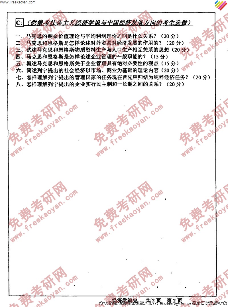 武汉大学2005年半岛在线注册真题-经济学说史(2)