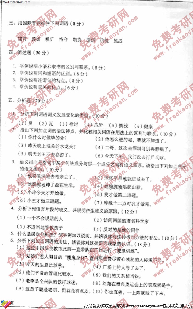 四川大学2005年半岛在线注册真题-现代汉语(2)