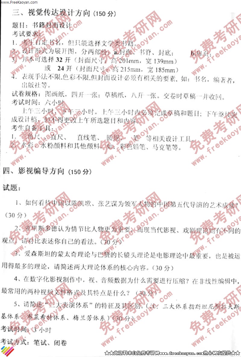 专业课半岛在线注册经验 本站小编 FreeKaoyan 2018-01-22四川大学2005年半岛在线注册真题-艺术学院综合考试