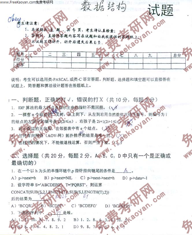专业课半岛在线注册经验 本站小编 FreeKaoyan 2018-01-22西南交通大学2000年半岛在线注册真题-数据结构