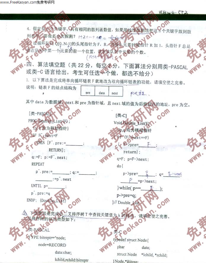 专业课半岛在线注册经验 本站小编 FreeKaoyan 2018-01-22西南交通大学2000年半岛在线注册真题-数据结构