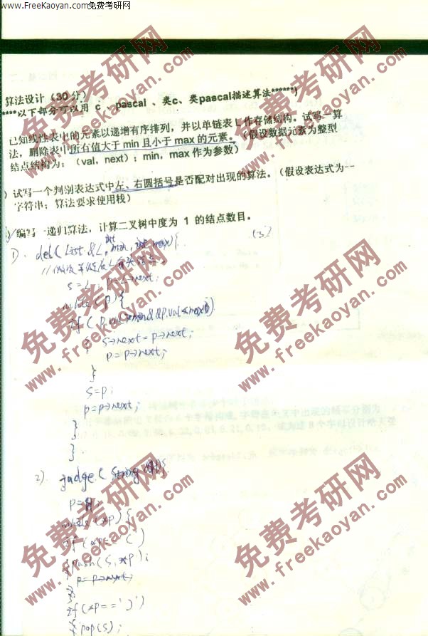 专业课半岛在线注册经验 本站小编 FreeKaoyan 2018-01-22西南交通大学2000年半岛在线注册真题-数据结构