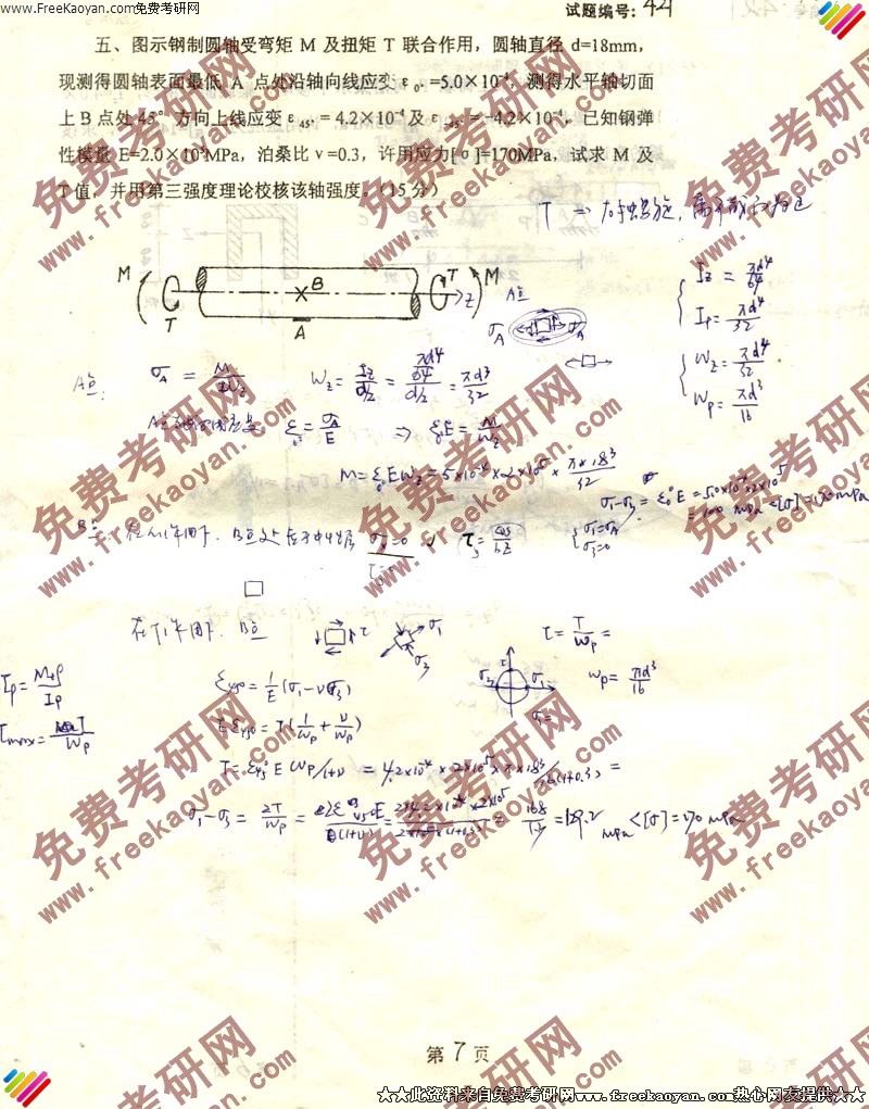 专业课半岛在线注册经验 本站小编 FreeKaoyan 2018-01-22西南交通大学2001年半岛在线注册真题-材料力学