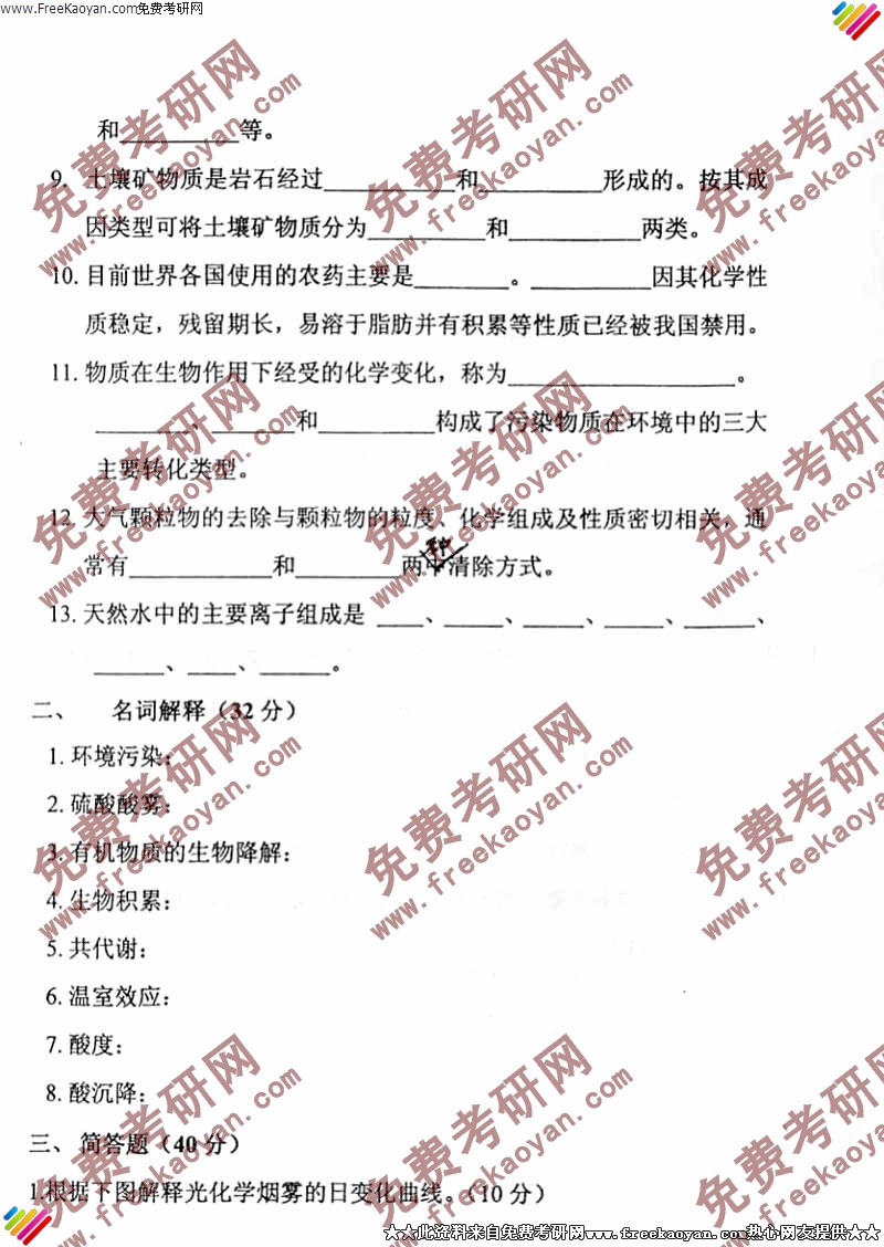 专业课半岛在线注册经验 本站小编 FreeKaoyan 2018-01-22西南交通大学2004年半岛在线注册真题-环境化学试题