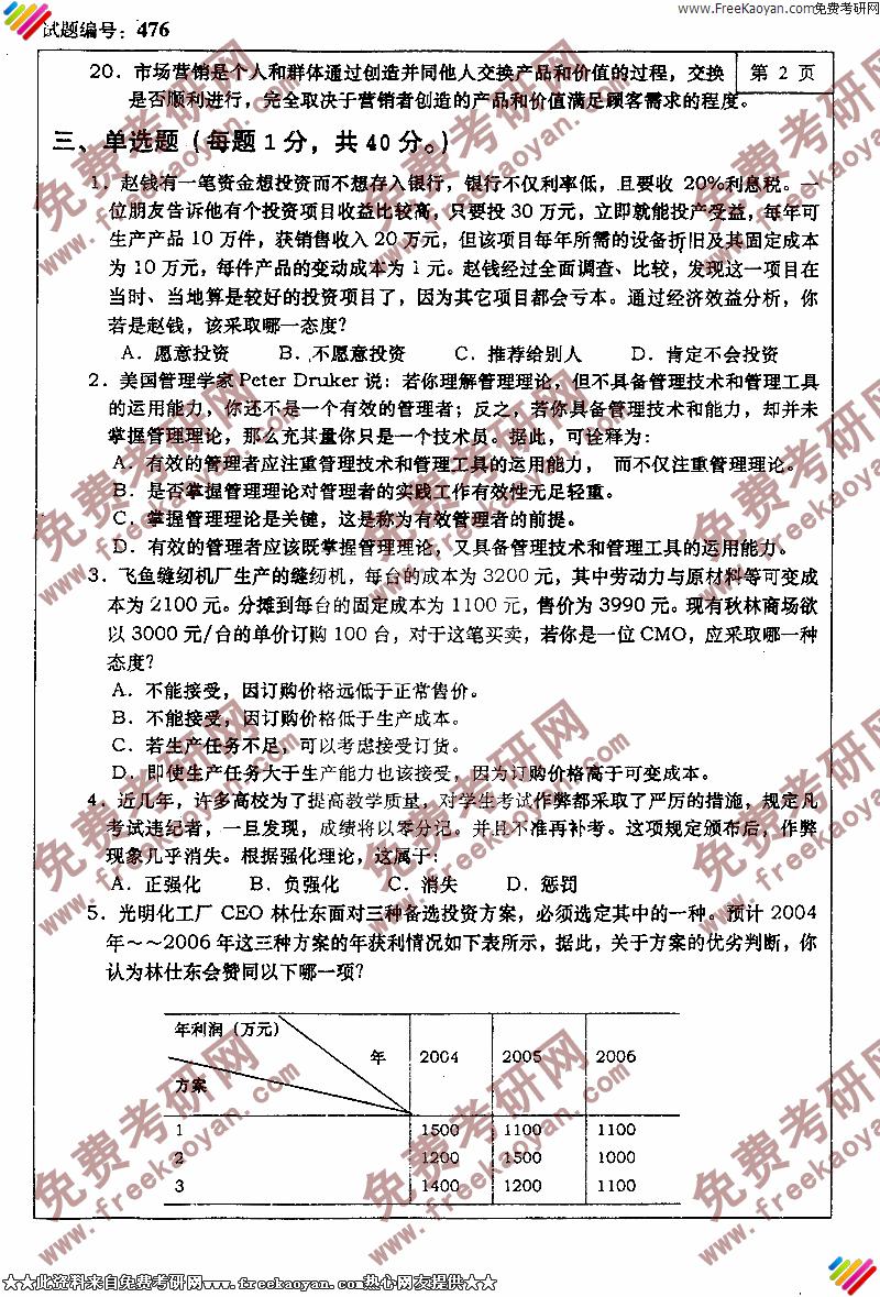 专业课半岛在线注册经验 本站小编 FreeKaoyan 2018-01-22大连理工大学2003年半岛在线注册真题-管理基础知识