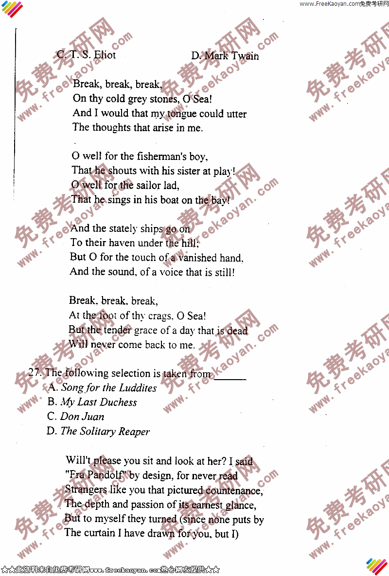 大连外国语大学2003年半岛在线注册真题-英美文学(9)