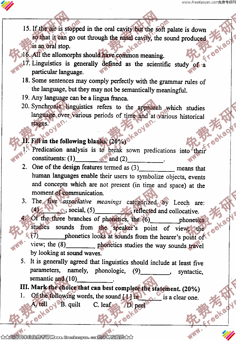 大连外国语大学2003年半岛在线注册真题-英语语言学(2)