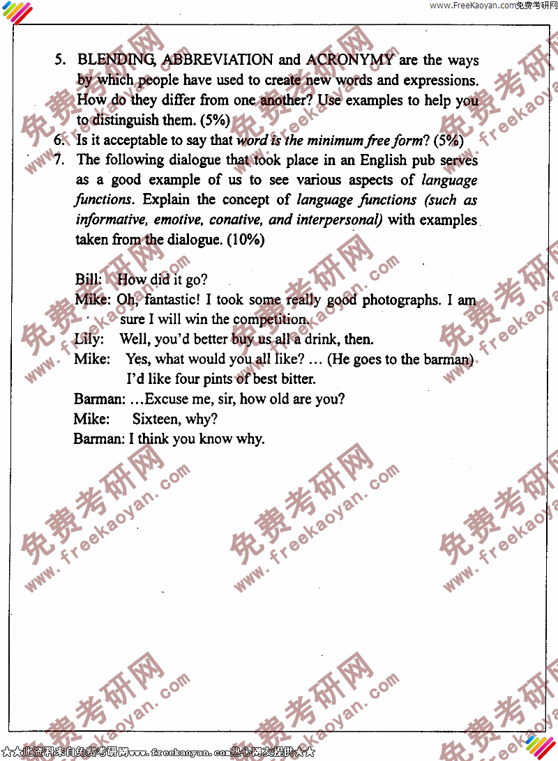 大连外国语大学2003年半岛在线注册真题-英语语言学(7)