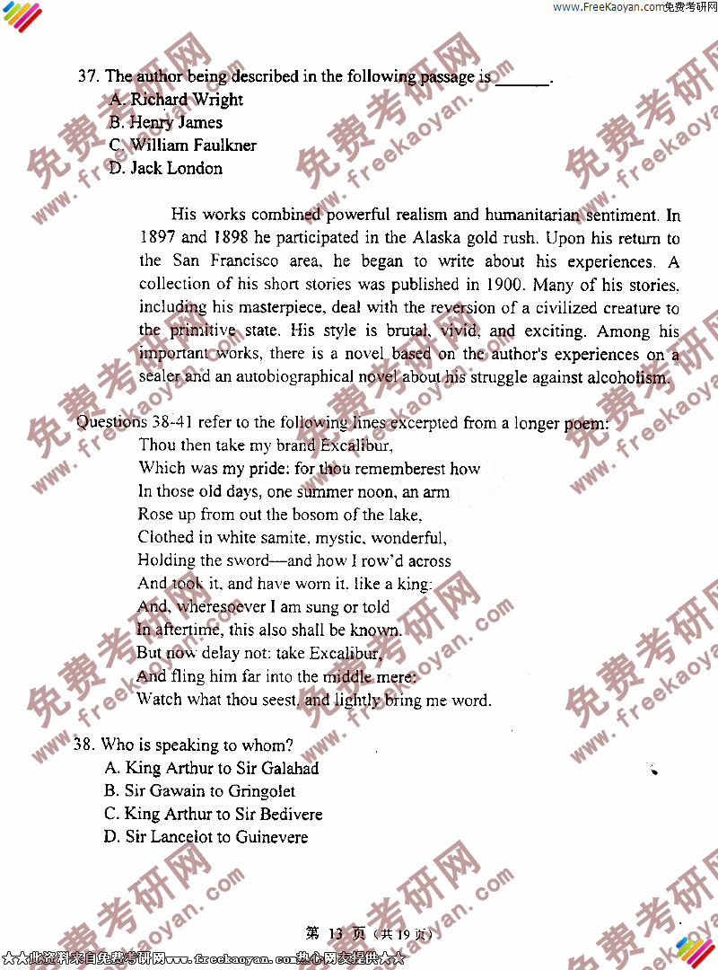 专业课半岛在线注册经验 本站小编 FreeKaoyan 2018-01-22大连外国语大学2003年半岛在线注册真题-英美文学