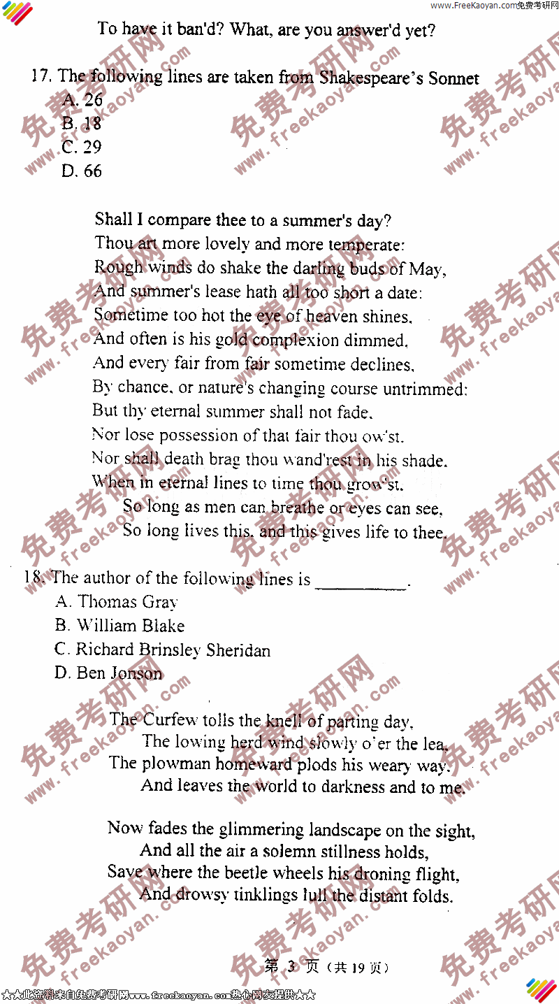 专业课半岛在线注册经验 本站小编 FreeKaoyan 2018-01-22大连外国语大学2003年半岛在线注册真题-英美文学