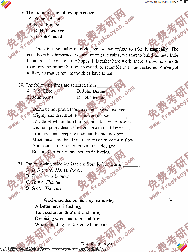 大连外国语大学2004年半岛在线注册真题-英美文学(4)